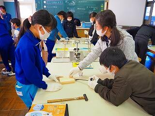 6年 理科 てこのはたらき 板に打ち付けた釘を抜く実験をして、てこのはたらきを学習しました。