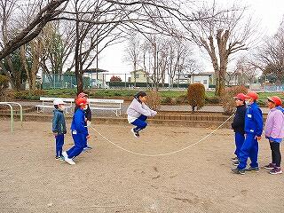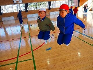 2年1組 体育 友達と2人で仲良くなわとびをしました。