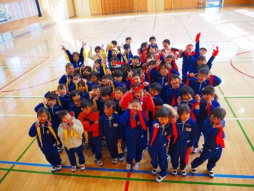 1年生は、来週、あおぞら保育園に交流学習に行きます。今日は、交流会で披露する運動会で踊ったダンスの練習をしました。交流が楽しみです。1・2組合同で写真を撮りました。