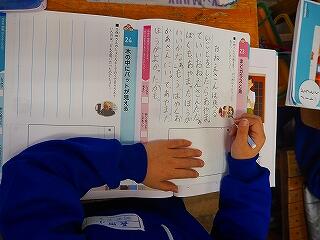 目標達成シートの話を聞いて、3学期のめあてと同じだと話していました。