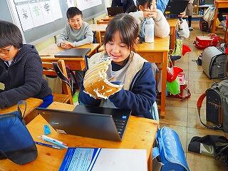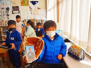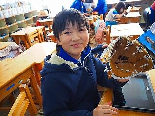 大谷選手から届いたグローブが各教室を回っています。4年2組の様子をお伝えします。