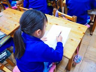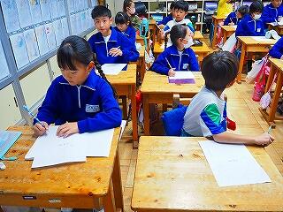朝8時から8時10分までの10分間に学習の補充をする「ながたタイム」において、長田小では文章を書く力を高めるために毎週火曜日を100マス作文の日と決めて取り組んでいます。100マス作文は、3分間で自分の書きたい作文を書き、後で題名を付けることを基本としています。学年によってお題を決めて書くこともあります。この100マス作文を書くことにより、文章を書く抵抗が少なくなりました。