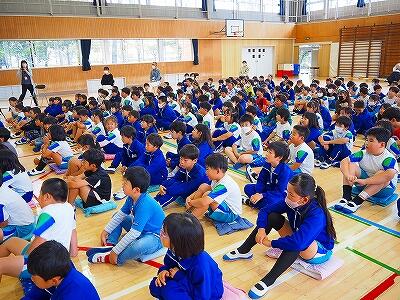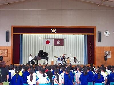 校歌も演奏してくれました。元気いっぱい校歌を歌いました。