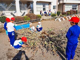 ぼくらの森(体育館西側)に抜いた苗を運びます。