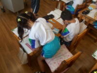 スクラッチというソフトを使い、プログラムを入力して絵を動かしていました。