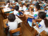 今日は、東西南北の四方位について学習した後、校舎の屋上にいきました。
