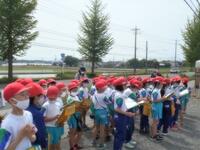 第2日目の今日は、学校から神戸製鋼周辺のエリアを歩いて観察しました。台地の上に広がるこのエリアは、水田はほとんど見られず、国道408号線沿いに立ち並ぶ様々なお店の間に畑が点々としてありました。工業団地内の道路を歩くと、学校の屋上から見た建物が実はとても大きなものであることが分かり、子供たちは圧倒されていました。