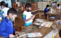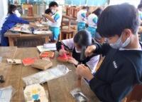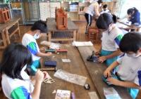 金づちで、 釘のいろいろな打ち方を試し、それを生かして木工作品を制作する学習です。金づちを使った経験のある児童が少なく、最初は恐々と金づちを振り下ろす様子が見られましたが、慣れてくるに従い、徐々にトントントンとリズミカルな音が図工室に響くようになりました。