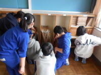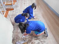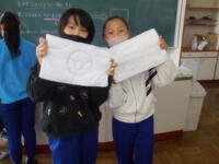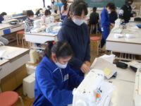 ミシンを使い、一生懸命雑巾を作っていました。早く作り終わった児童は、雑巾にかわいい刺繍をいれていました。