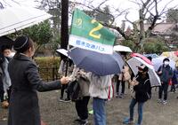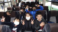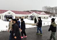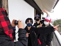 日の出と ほぼ同時刻の6:30に出発です。途中 休憩のため、磐越道の磐梯山SAでバスを降りると、駐車場には何と雪が‥。「この後どうなるの?」という不安とワクワク感が入り混じった気持ちを胸に、会津若松市に到着しました。