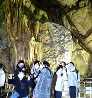 朝食を済ませ、8:00にホテルを出発。バスを東に進め 1時間。日本有数の鍾乳洞である あぶくま洞に到着です。グループごとにカメラを持ち、旅行の思い出を記録していきます。