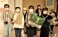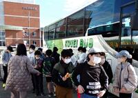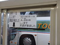 あぶくま洞を見学後、バスは浜通りへ。アクアマリンふくしまでは、震災プログラムの学習をしました。市街地に押し寄せた3.11の津波の高さに驚きました。