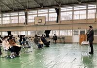 令和4年度 中村中学校入学予定者を対象とした説明会が行われました。学習面で小学校と変わることや生活面での注意点、ネットに接続できる電子通信機器を使用する上での留意事項、新入生オリエンテーションの日時・内容などについて説明があり、親子で真剣に聞きました。現時点での入学予定者は124名で、4クラス編制になる見込みです。