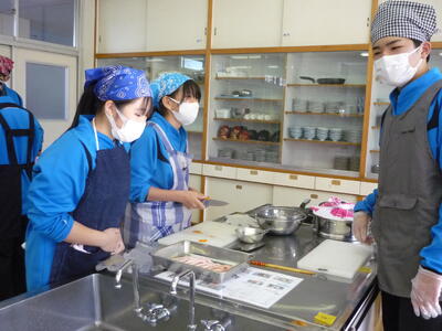 1年生が調理実習で生姜焼きをつくっていました。柔らかそうな、おいしそうな生姜焼きができあがっていました。職員室にいる学年の先生にも、届いていました。とってもおいしいと言っていました。