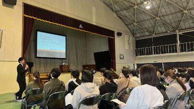 自分ががんばってこれたのは、自分を支えてくれた周りの人への感謝の気持ちを忘れなかったからという言葉がとても印象的でした。在校生に向け、「自分に自信がもてるよう、練習や勉強に取り組んで欲しい。」という強いメッセージが送られました。