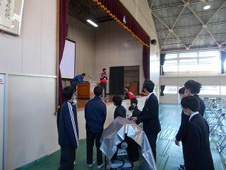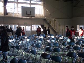 1月15日は、中学校入学説明会が行われます。それにあたり、朝から1年生が会場の準備を行ってくれました。これまでの行事等の会場準備は、教員が一つ一つ指示をし、その指示に従って生徒たちが活動していました。しかし、今朝の1年生は、ゼッケンをつけた各クラスの代表生徒が、会場図やマイクを持って指示をし、生徒たちが動くというものでした。確かに教師が指示をした方が効率よく準備ができるのかもしれません。しかし、生徒自身が判断し、生徒同士で話し合い、いかにして効率よく会場準備を行うかといった能力を高めるのも学校教育の役割です。生徒たちの中に潜在している能力を開花させる会場準備の姿に、生徒たちの限りない可能性を感じました。