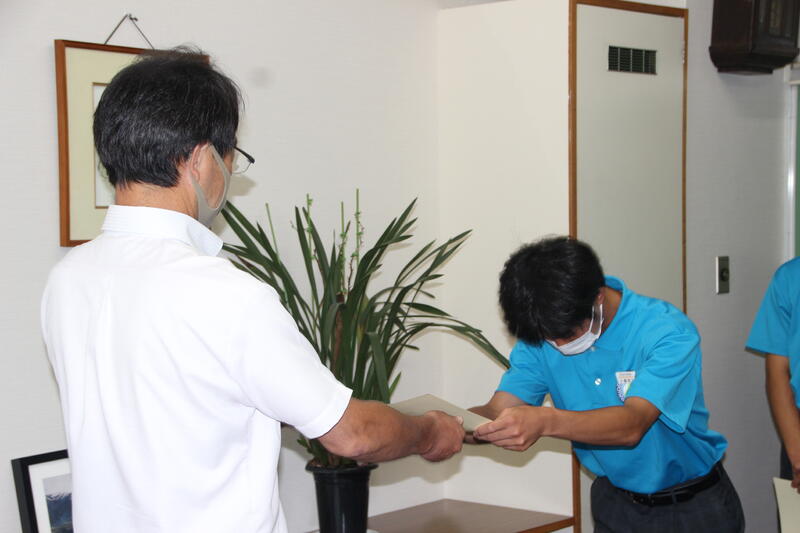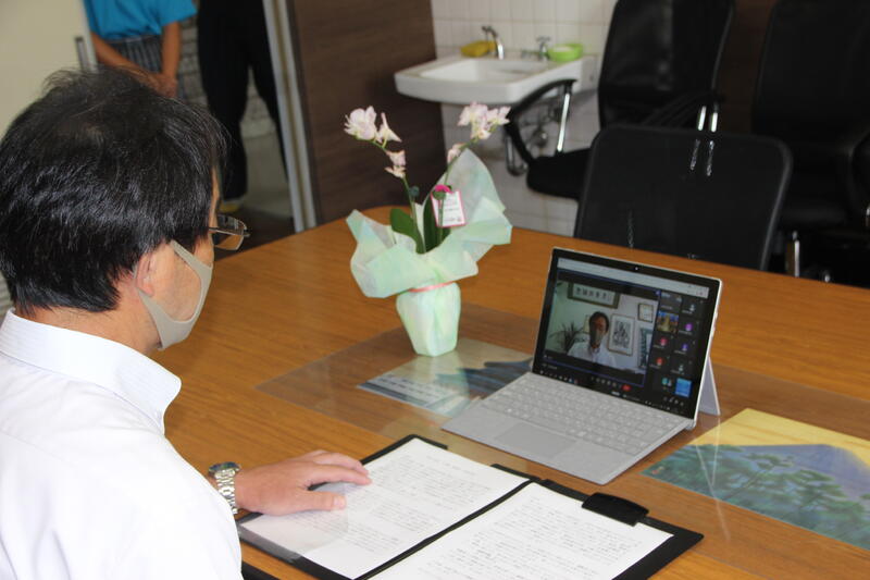 1学期の終業式と表彰伝達がリモートで校長室で行われました。