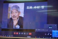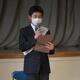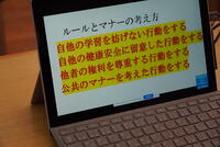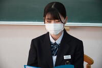 感染防止のため、生徒は演説をリモートで聞きました。