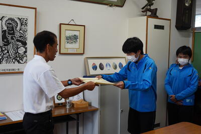 校長講話のあとには表彰を行い、多くの生徒が校長先生から賞状を授与していました。