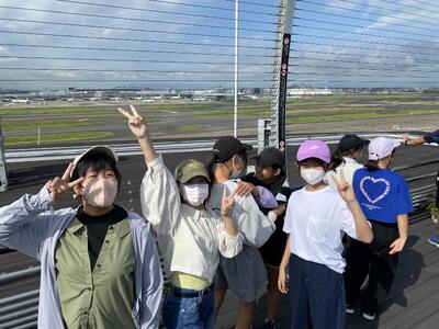 修学旅行二日目、最初の見学地は羽田空港てす。展望デッキから飛行機の発着を見て、しばし遠地に想いを馳せていました。