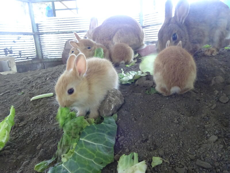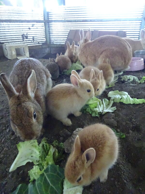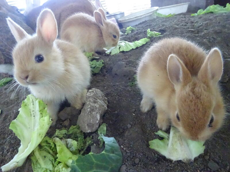 赤ちゃんは、だいぶ慣れてきたので、穴の外に出てくるようになりました。えさのキャベツも夢中になって食べています。