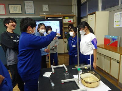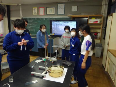 6年生7人が、真岡市理科研究発表会のために、実験をしています。