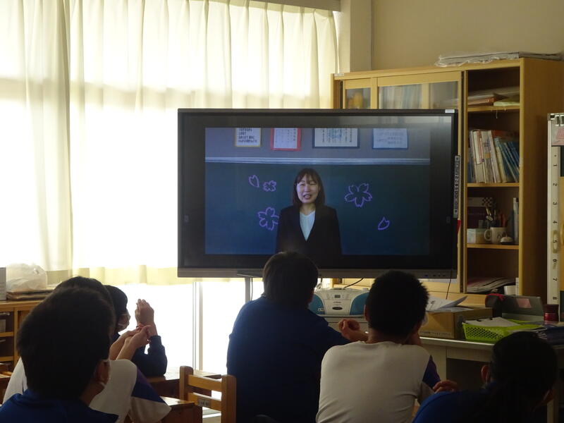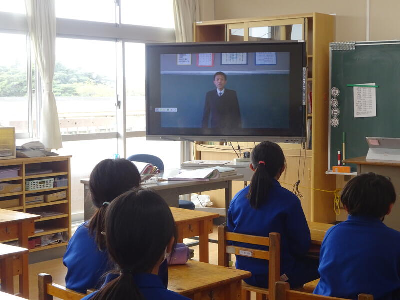 3月の異動でお別れした先生方の離任式が行われました。校長先生からの紹介の後、事前に撮影したお別れのメッセージを視聴しました。励ましの言葉を胸に刻むように、しっかり聴くことができました。