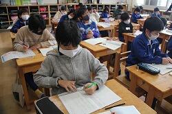 国語では修飾語を学習しています。この単元は、よく学力調査にも出題され、子どもたちにとっては苦手なところです。最初に主語と述語を探し、それを説明しているものが修飾語と分類。主語には、くっつきの「は」「が」があると担任から指導をうけるも、主語探しでは修飾語もカップリングしてしまう様子も見られました。多くの文を読んでいくことが求められます。本を読むことで自然にできるようになります。