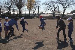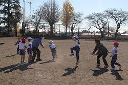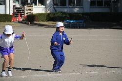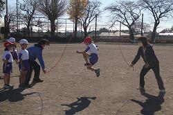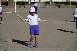 1年生の体育は、縄跳びを学習しています。2つのクラスが合同で行っているため、長縄跳びと個人跳びに分かれて行いました。長縄跳びでは、タイミングを取って開店する輪の中に入っていくことを練習しました。個人跳びでは、目標を決めて練習に取り組みました。