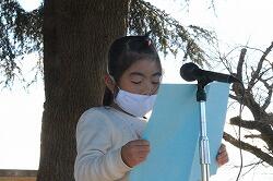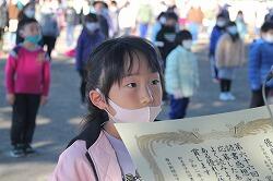 次に校長より話がありました。校長が2学期の始業式で掲げた目標は「1:やさしい心 2:前を向く気持ち 3:楽しんで工夫する」でした。それらの目標に合わせて2学期がどうであったかの振り返りの話でした。そして「1月8日に、まだ元気で会いましょう」と締めくくられました。