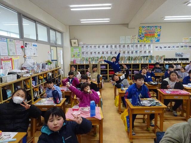 食べているときの表情は、いつもの給食よりも少しうれしそうな気がします。