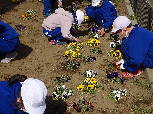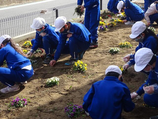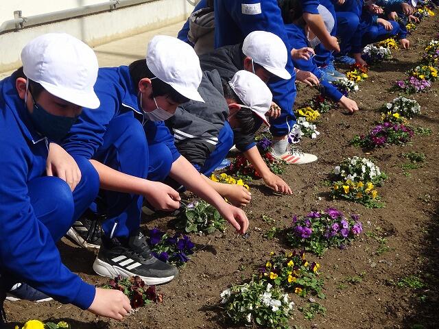 昨日、昼休みの時間を使って、4年生以上の児童が花壇の除草作業をしていました。