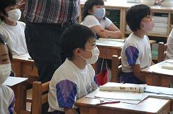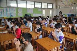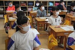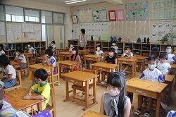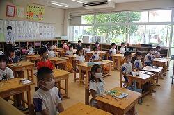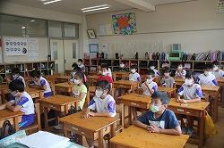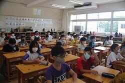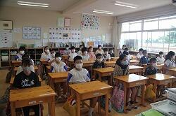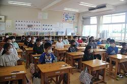 今日から2学期が始まりました。熱中症予防のため、始業式は放送を使って室内で行いました。
