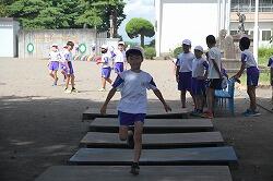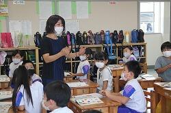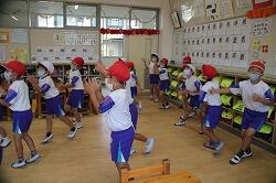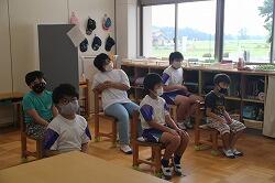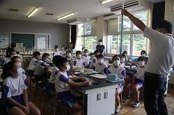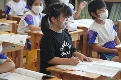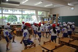 体育では中村体操を行いました。この体操は、本校の若手教員チームが、新型コロナウィルスによる休校で、体力を維持するためにどんな運動をしたらよいかをまとめていったものです。今では、DVDとなり各クラスに配付。映像を基に、練習をしています。