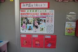 新型コロナウイルス感染対策、熱中症予防に関して、保健室前に呼びかけの資料を展示しています。