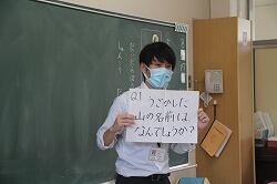 今日は、話の内容を確認するためにクイズ形式で学習を進めていきました。3択の問題で、「山の名前は何だっただろう」とあると、「男体山」など、身近にあるものを織り交ぜながら、児童の関心を高めていきました。