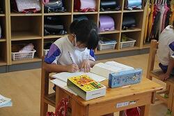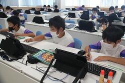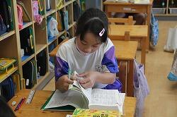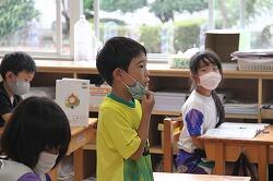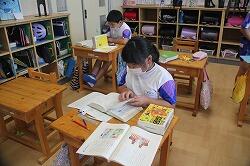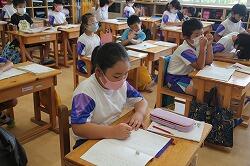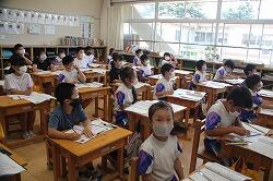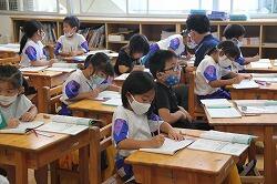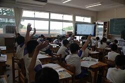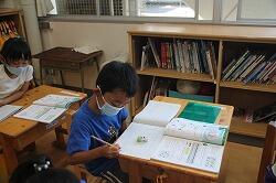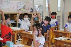 1年生の算数は、ひき算の文章問題を学習しています。今日は「どちらがどれだけ多いか求める」という課題です。問題文をしっかりと読み取り、何と何を比べているかを把握するのがポイントです。電子黒板に問題を表示しながら、国語の読み取りでした。問題文をよく読み取れるようになるためには、問題を解くだけでなく、普段からの読書が大切です。読書指導を継続して行っていきます。