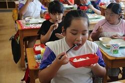 子供たちにとっての楽しみの一つは給食です。今日の給食の様子をお届けします。