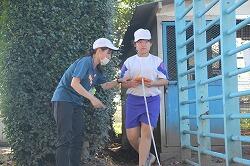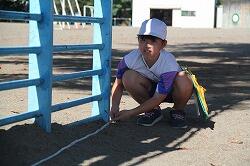 算数では長さの学習をしています。今日は、校庭に出て、いろいろな長さを測定しました。