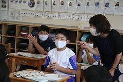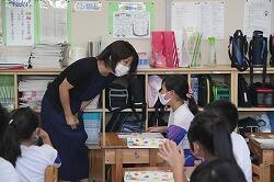 外国語の学習では、100までの数字の言い方を学習しました。担任の発音に合わせ、何度も練習を重ねました。
