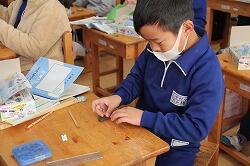 理科は「じしゃく」の学習を行っています。今日は極の性質の一つ、引き付ける力を学習しました。子供たちの感覚では、「磁石は鉄にくっつく」という表現、とくに「くっつく」という言葉を使ってしまいます。「引き付ける」が正しい言葉になります。今日は、「引き付ける」という感覚を体にしみこませる実験学習を行いました。