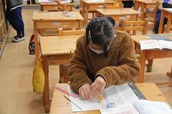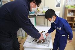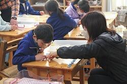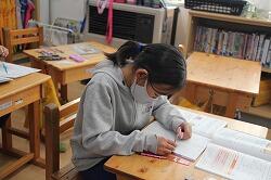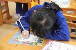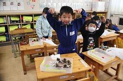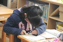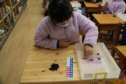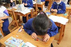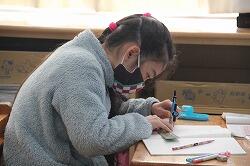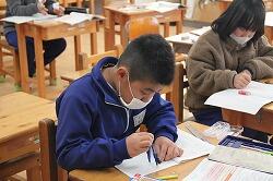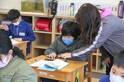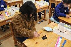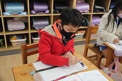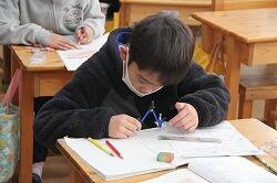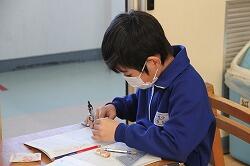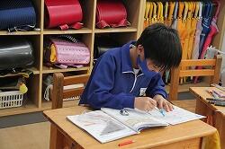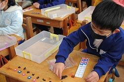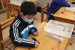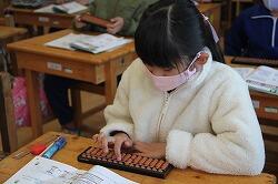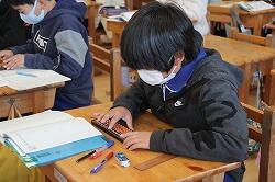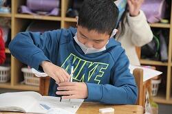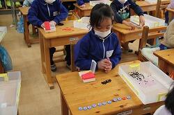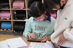 算数は「そろばん」を学習しています。昔の子どもたちにとっては、ごく当たり前のものでしたが、今では珍しいもののようです。しかし、玉を動かしていくだけで計算ができることに驚き。担任から出題される問題に、集中して取り組みました。