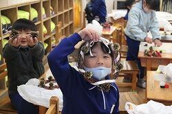 先日収穫した朝顔の蔓と校庭で拾った松ぼっくりを使って工作しました。いよいよ来週はクリスマス。