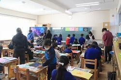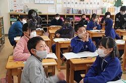 次に校長より話がありました。校長が2学期の始業式で掲げた目標は「1:やさしい心 2:前を向く気持ち 3:楽しんで工夫する」でした。それらの目標に合わせて2学期がどうであったかの振り返りの話でした。そして「1月8日に、まだ元気で会いましょう」と締めくくられました。