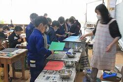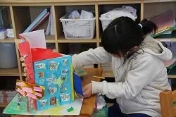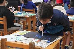 「まどをあけたら」の作品が完成しました。今日は、どんなところを工夫したかを作品カードに記入しました。子どもたちは、工夫したところを読みながら鑑賞し合います。