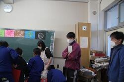 あと2日で終業式です。子どもたちの心は、冬休みに向かっています。5年のあるクラスでは、担任と子どもたちが楽しみ会に向け、ツリーを制作しています。