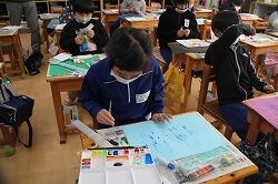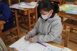 交通安全レター作戦で、親、祖父母、身近な人あてへの葉書を作成しました。