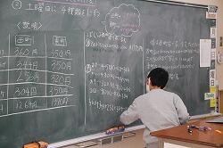 子供たちは自分の考えをノートにまとめていきました。そして、何人かの児童が考えを黒板に示し、考えあいました。途中、担任から「こうなれば?」と別角度からの質問。そのたびに、グループで意見を交換し合い、自分の考えを深めあっていく、学びあいの授業を展開しました。