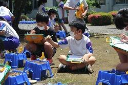生活科では、ミニトマトが発芽し、観察を行いました。