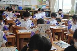 自分を詳しく紹介する学習を行っています。「犬が好き」を「I like dog」と表現すると、AETから「I like dogs」とdogを複数形で表す説明があると、子どもたちは、「なんにでもsをつけるの?」と早合点してすべてに「s」を付けようと。「ケースによって違うんだよと」AETから。表現方法について学ぶ瞬間でした。